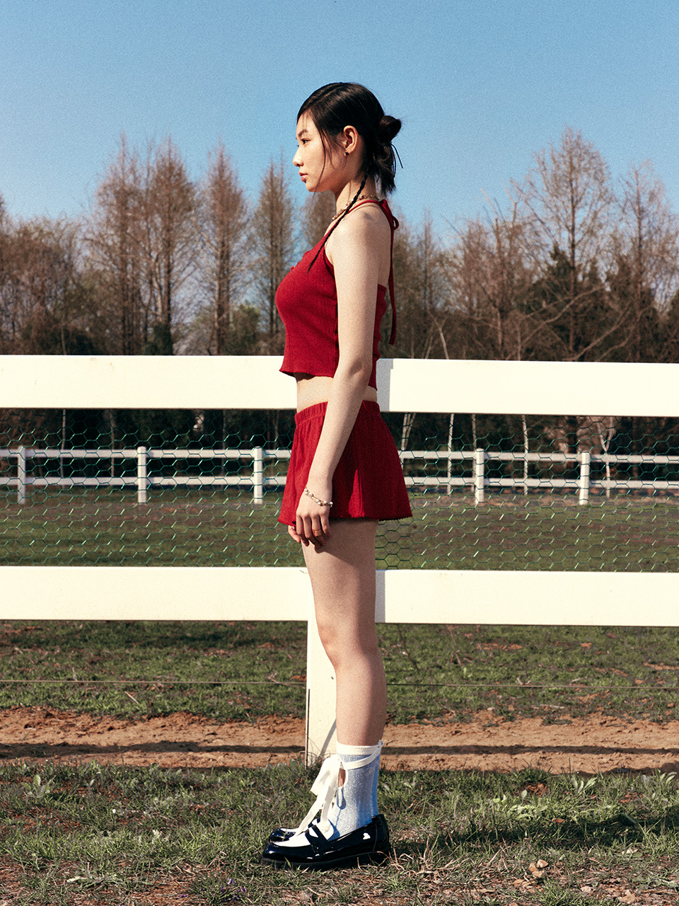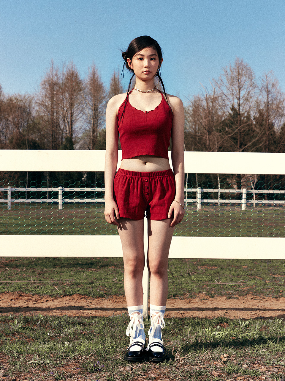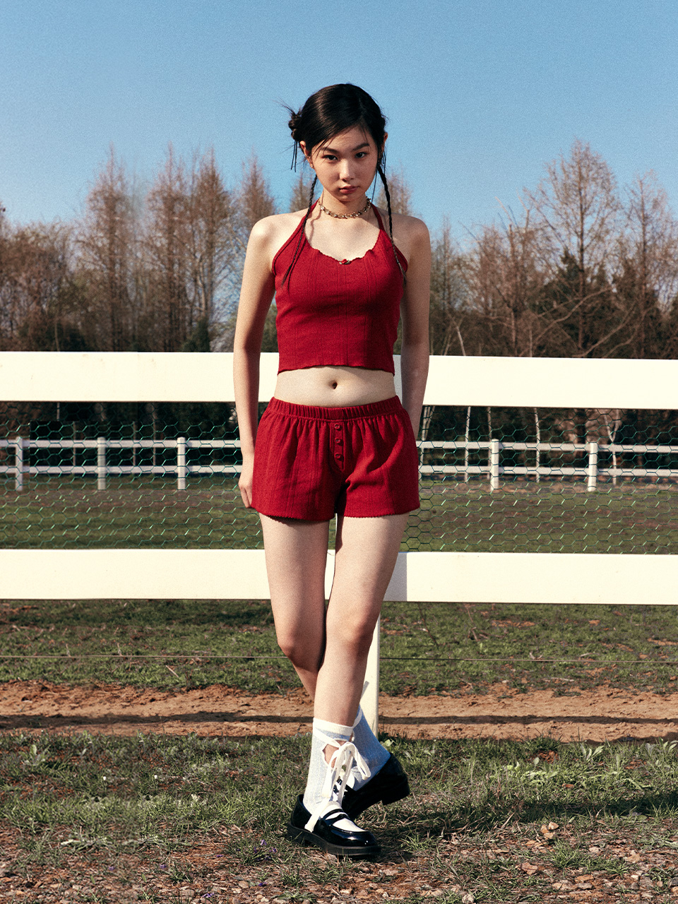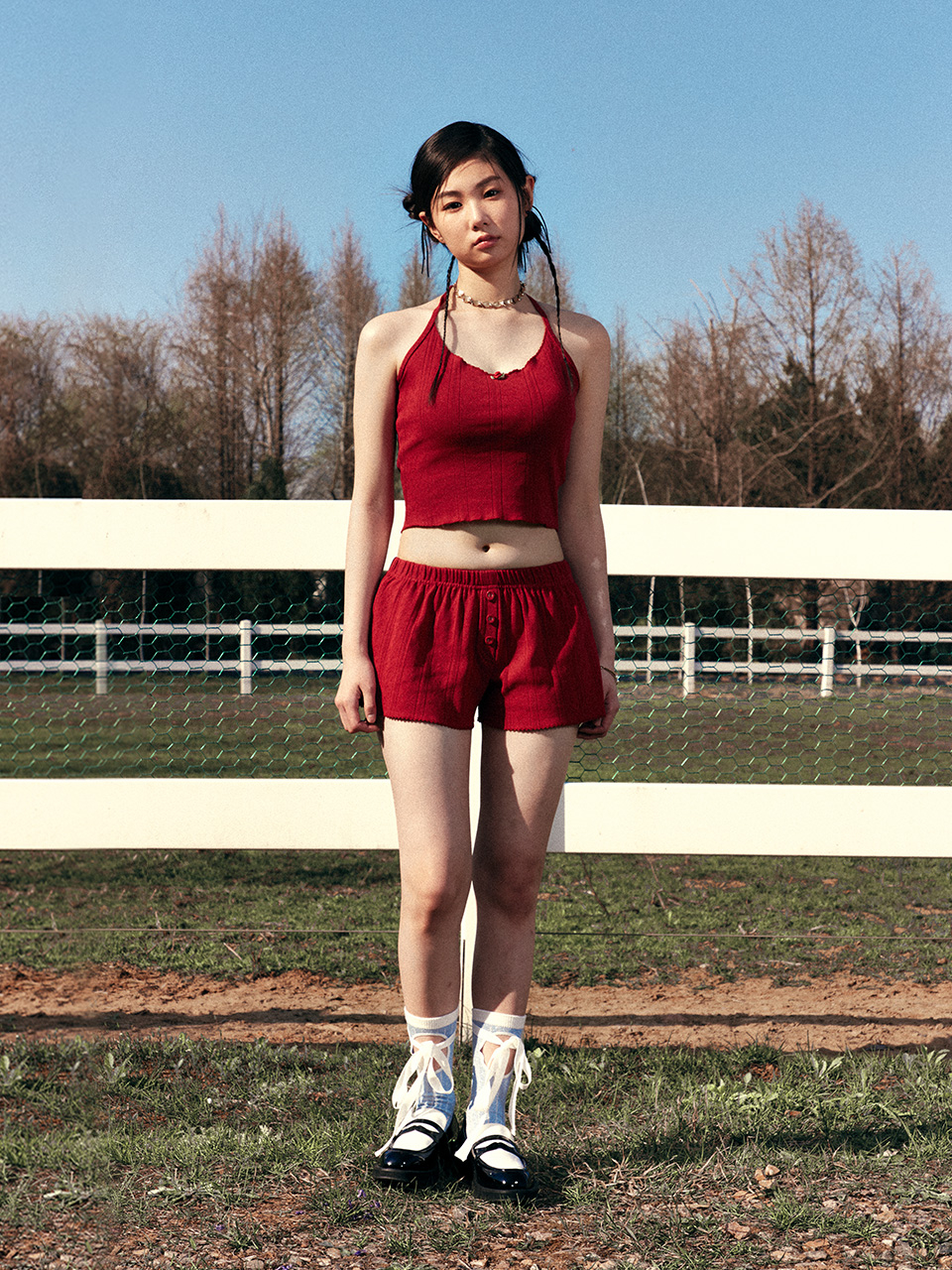 EYELET SLEEVELESS RED