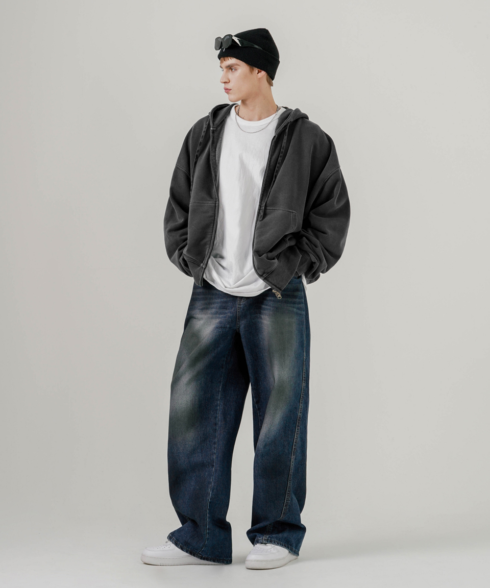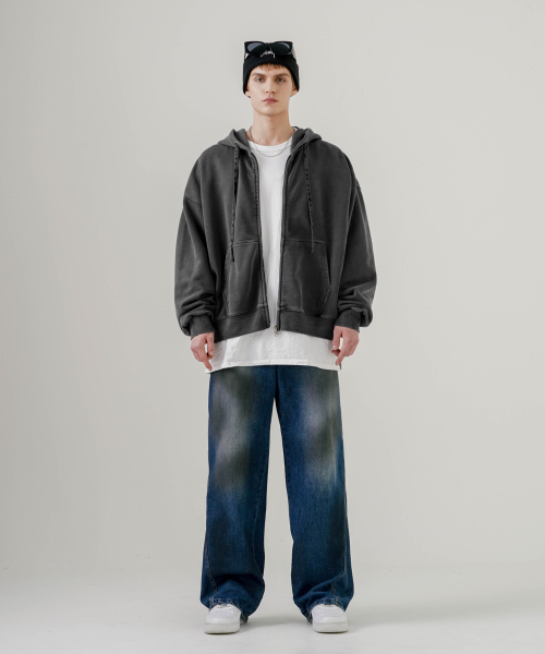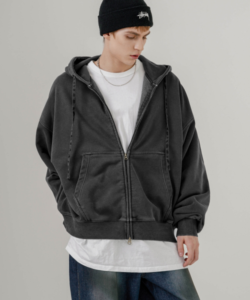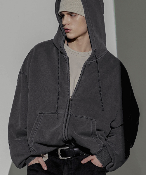 이지 크롭 피그먼트 후드집업 딥그레이 MMOT6762
