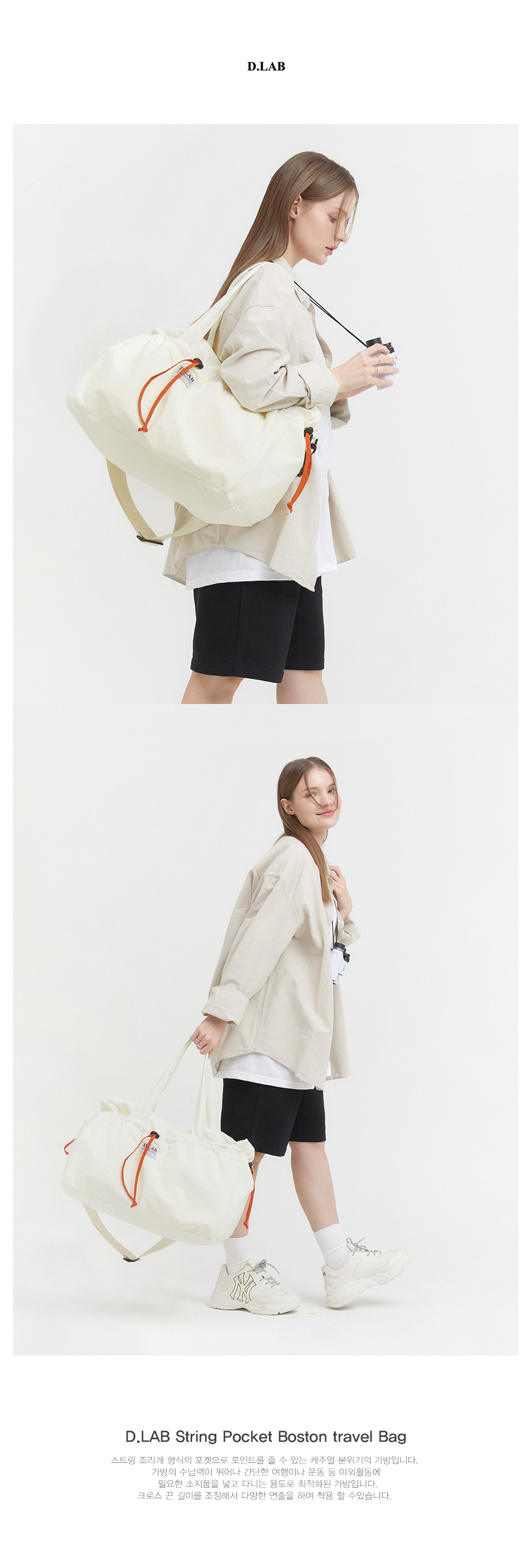 스트링 포켓 보스턴 트래블백 - ivory