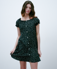플라워 오픈 숄더 원피스 블랙 4W232J003