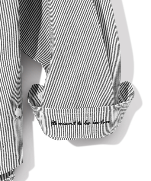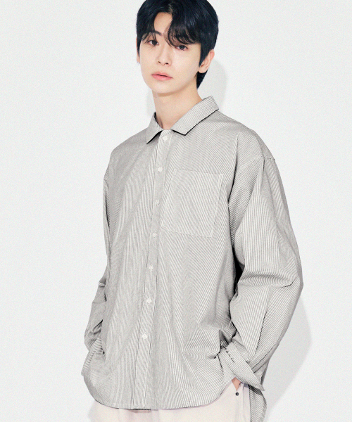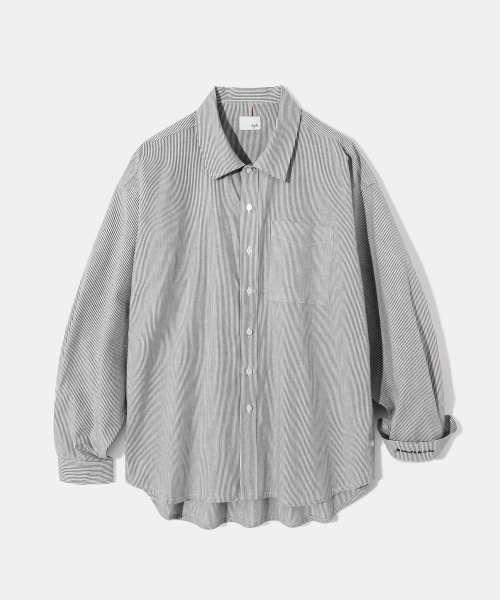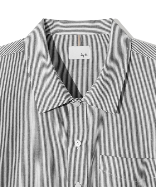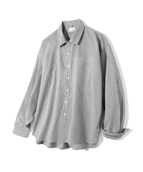 Side slit Stripe Cotton Shirt S139 Black