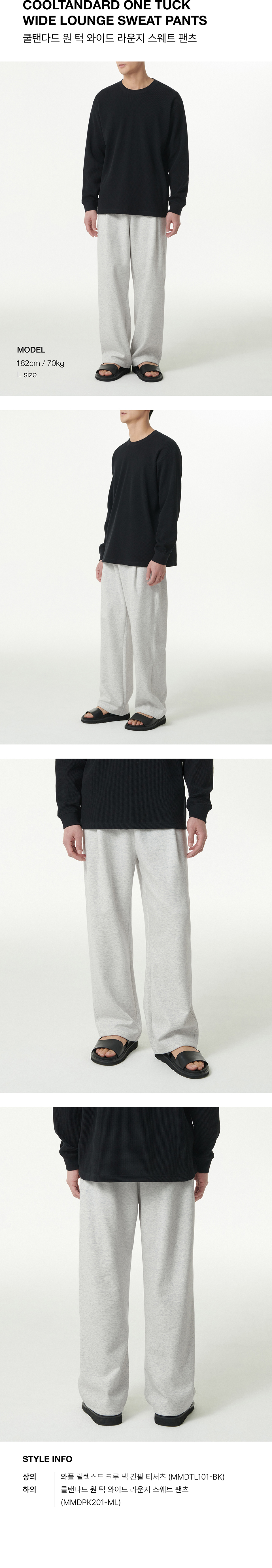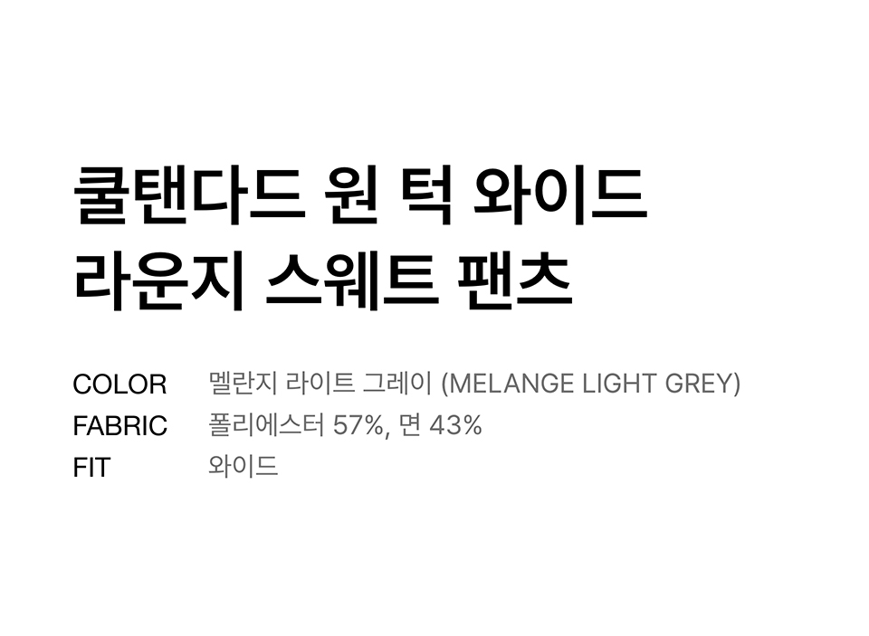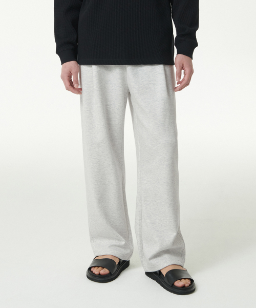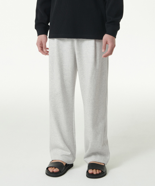 [쿨탠다드] 원 턱 와이드 라운지 스웨트 팬츠 [멜란지 라이트 그레이]