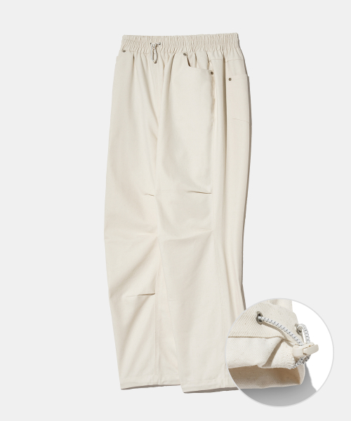 - 밑단에 스트링과 코드락이 겸비되어 기호에 따라 와이드핏과 조거핏 연출 가능