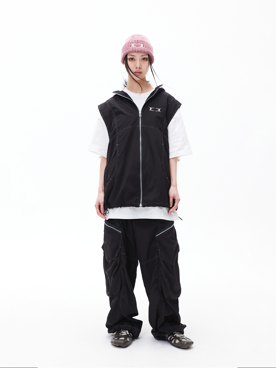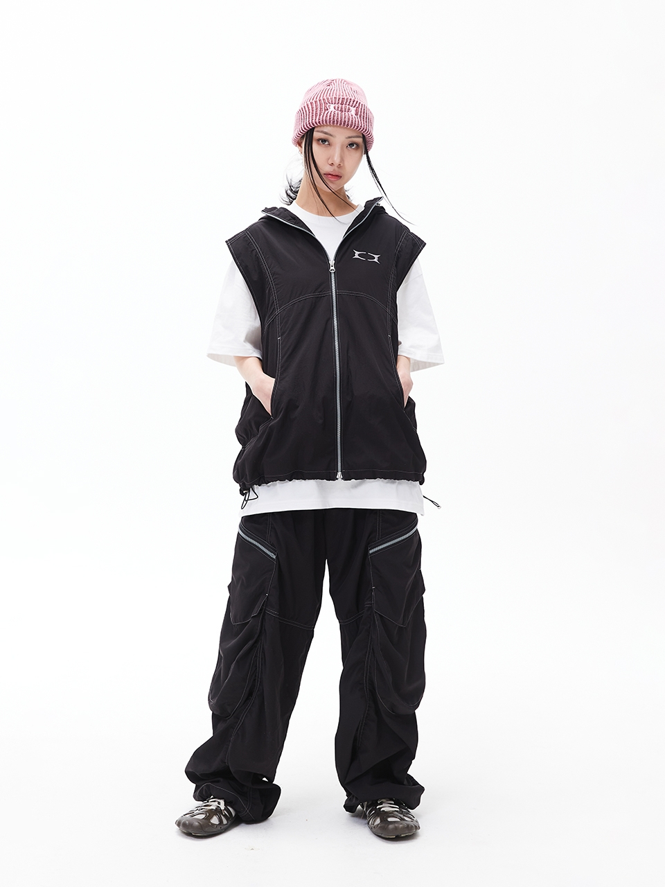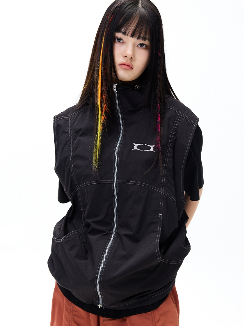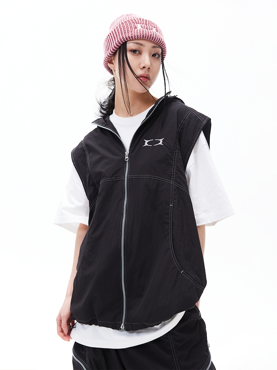 GLOSSY HOOD VEST BLACK