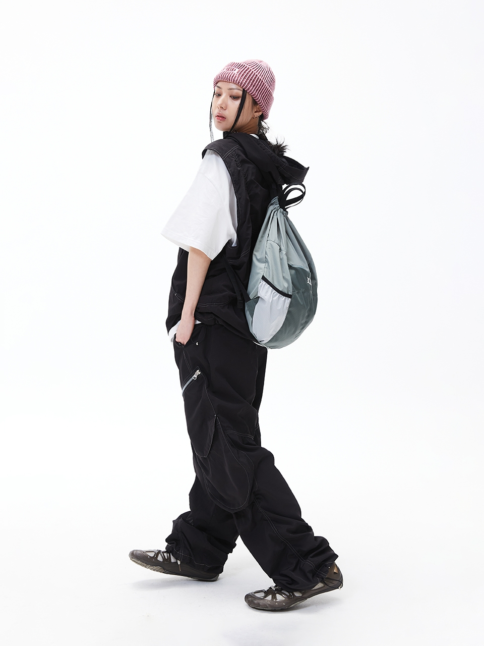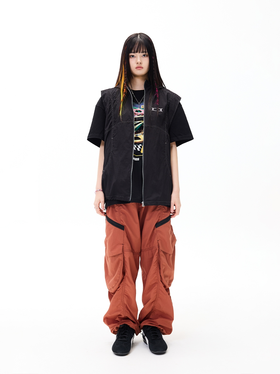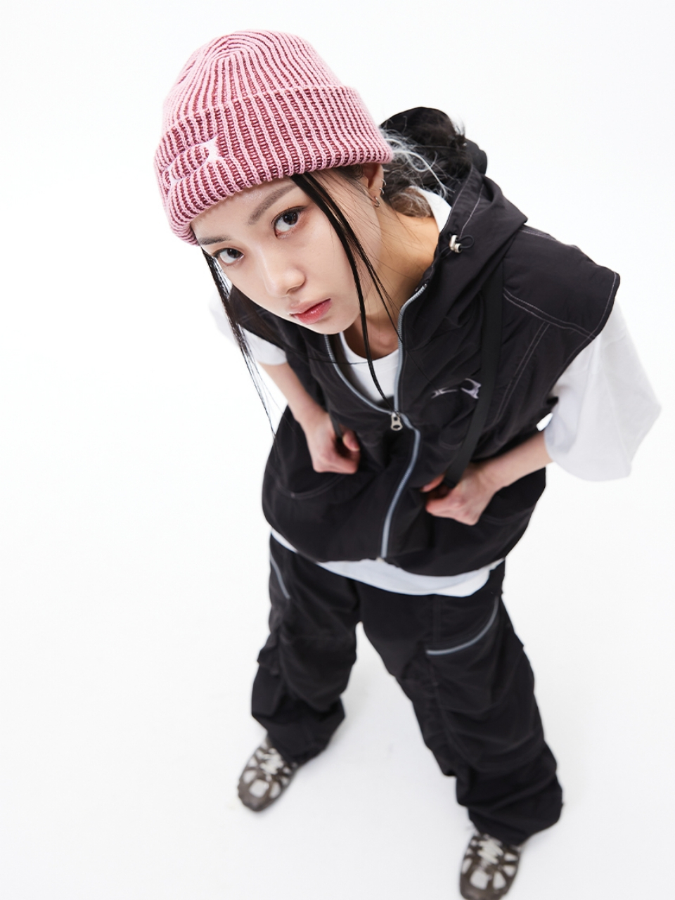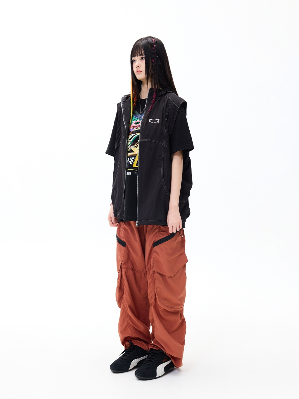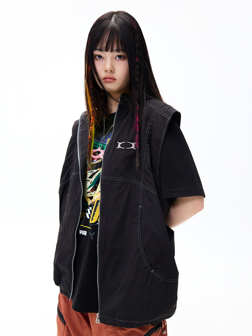 GLOSSY HOOD VEST BLACK