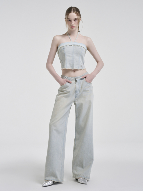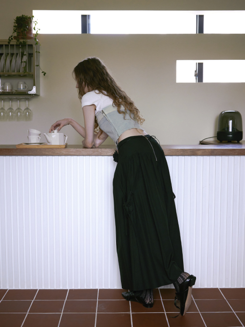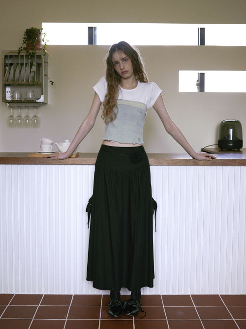 레이스 프릴 레이어드 슬림핏 사이드 셔링 나시 슬리브리스 _ 3COLOR
