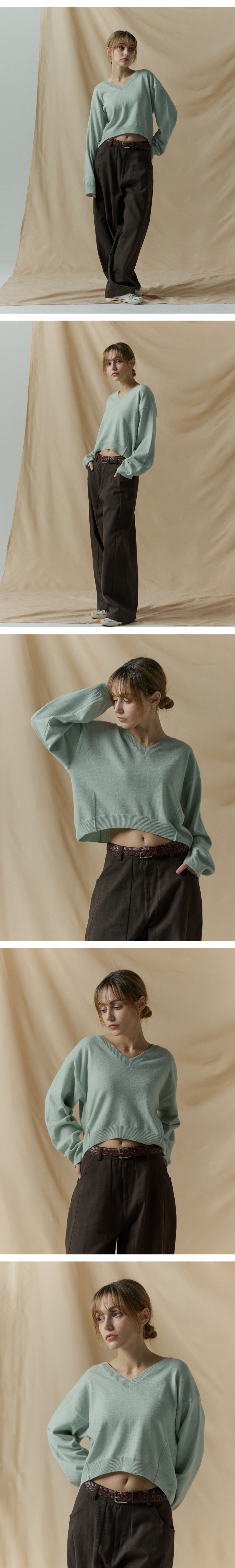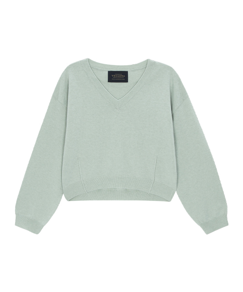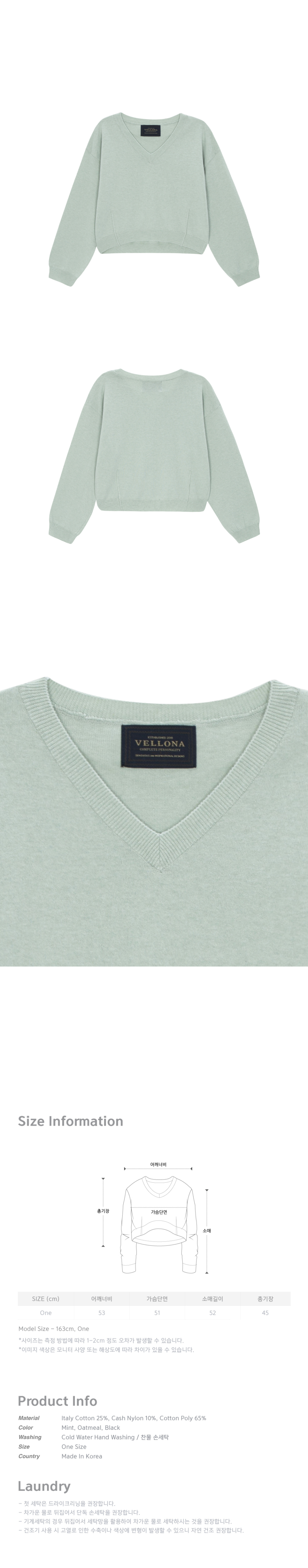 워셔블 헤어리 브이넥 스웨트셔츠_Mint Grey