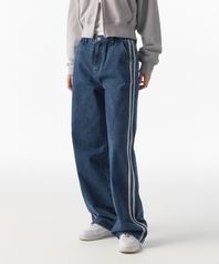 우먼즈 와이드 트랙 데님 팬츠 [미디엄 인디고]