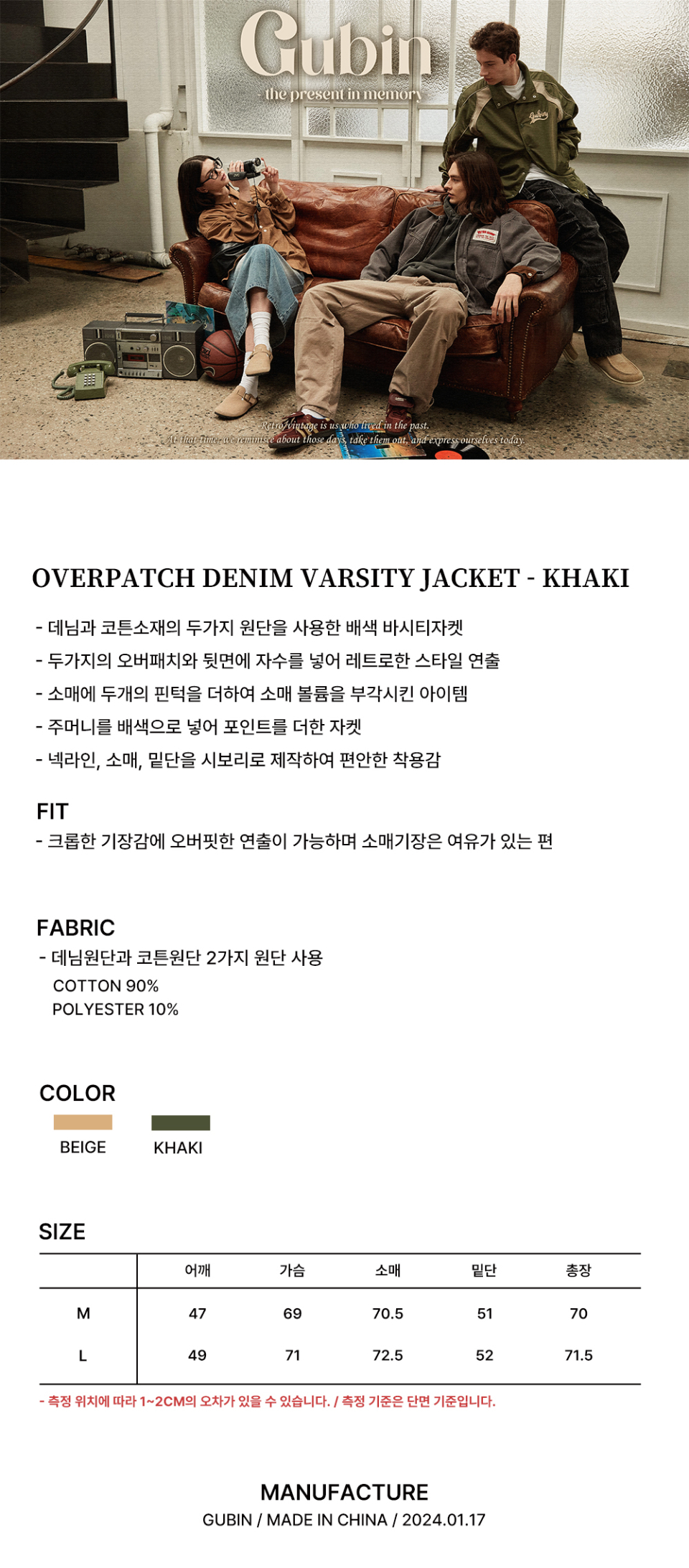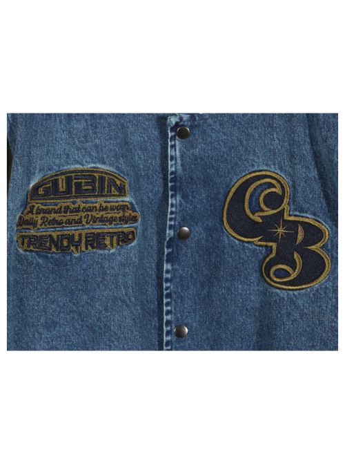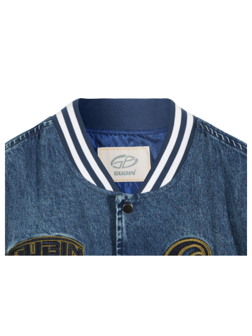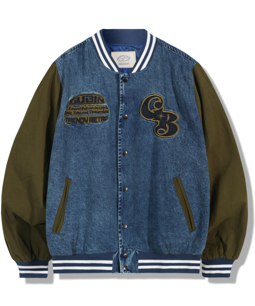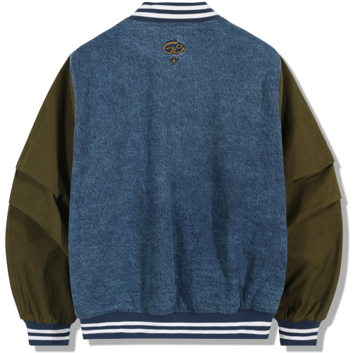 오버 패치 데님 바시티 자켓 - 카키