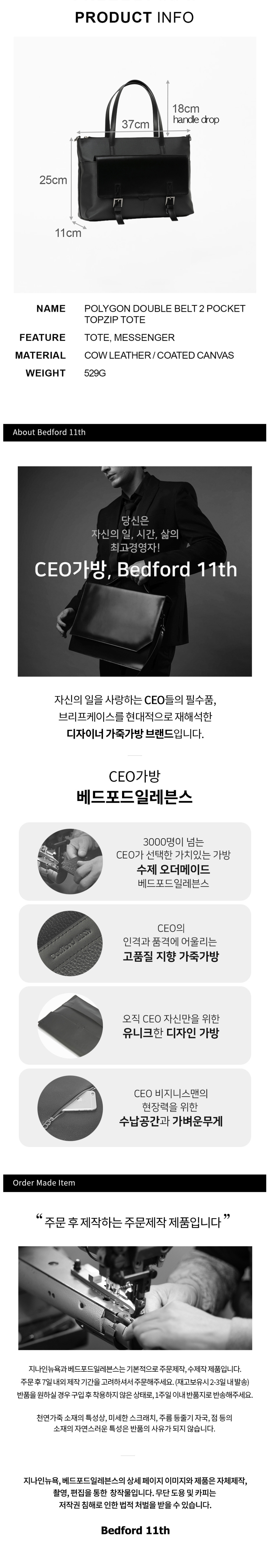 BEDFORD11TH(베드포드일레븐스)는 창의적인 예술감각이 넘치는 젊은이들의 감성을 바탕으로 만들어진 브랜드로, 기존의 서류가방 위주의 남성 가방에서 탈피, 여성가죽가방의 디테일과 소재를 남성가방에 접목하여 , 새로운 컨셉의 bag을 추구하는 고급스럽고 심플한 캐릭터 있는 가죽가방브랜드입니다.