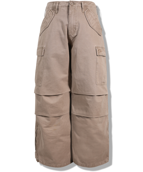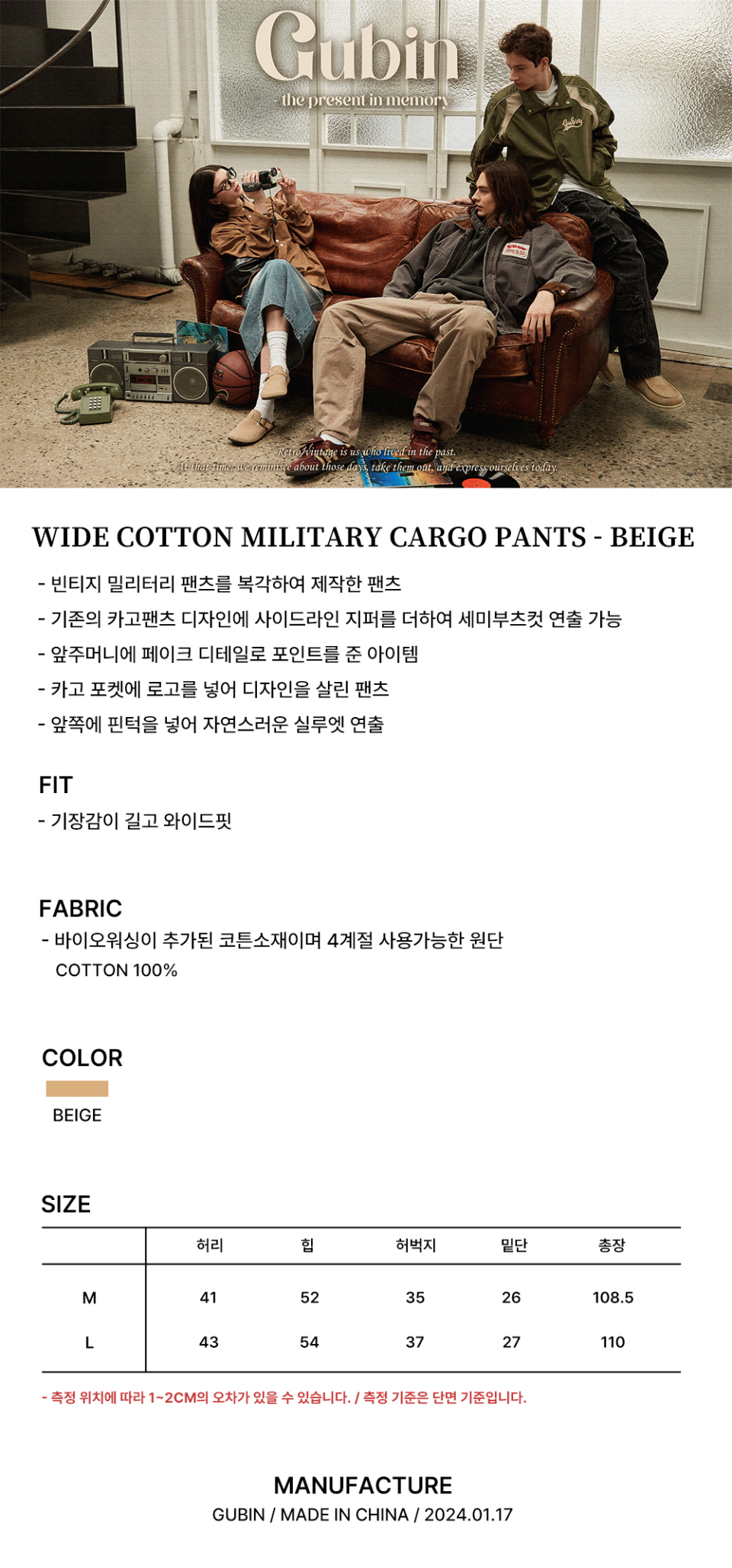 와이드 코튼 밀리터리 카고 팬츠 - 베이지