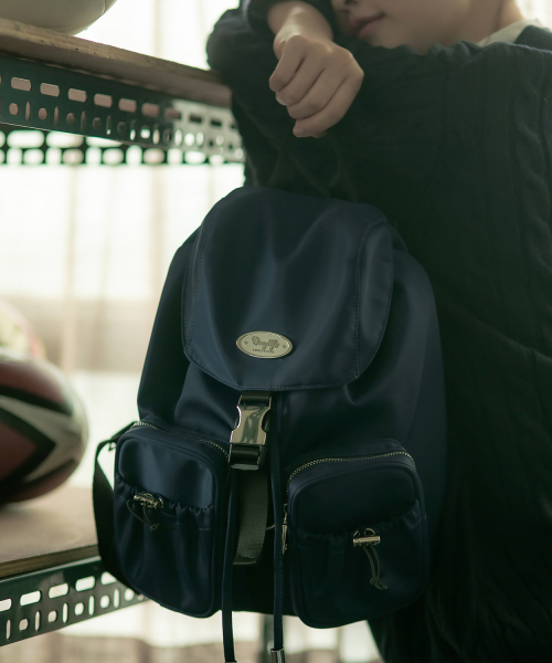 우먼즈 나일론 플랩 미니 백팩 [라이트 베이지]