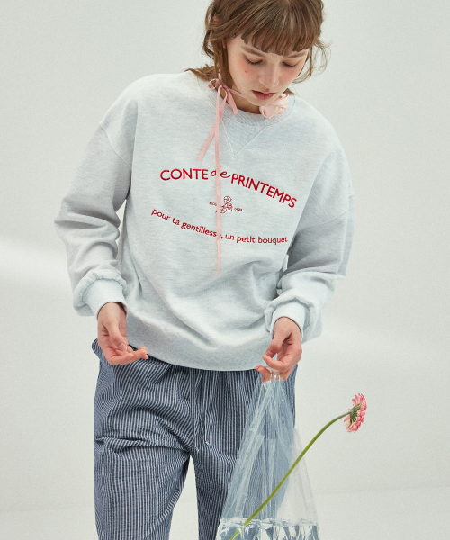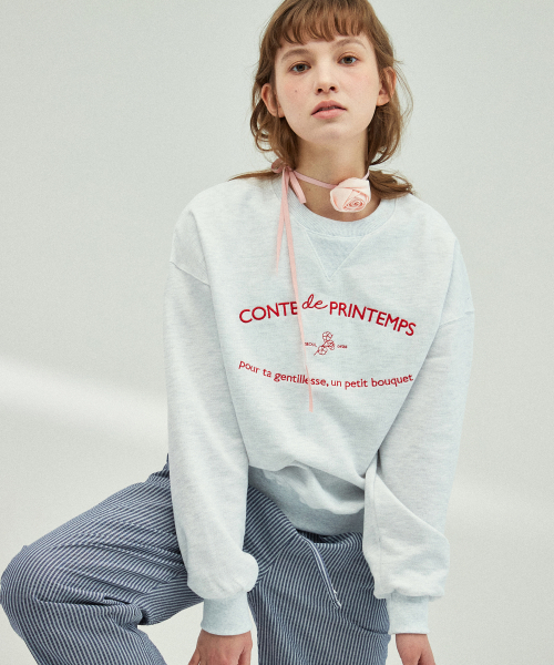 레터링 쟈가드 스웨트셔츠 [화이트 멜란지]