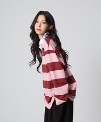 스트라이프 럭비 카라 셔츠 핑크