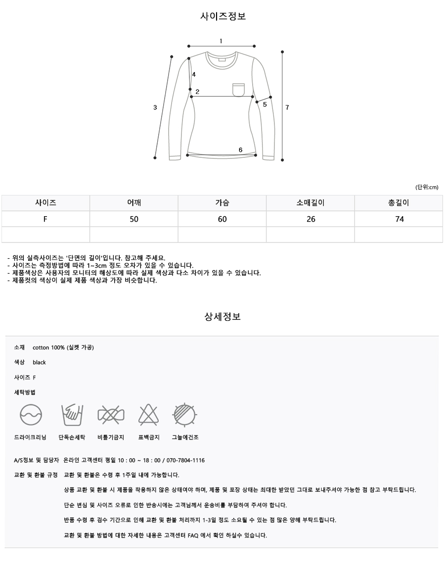 F - 어깨 50 / 소매 26 / 가슴 60 / 총기장 74