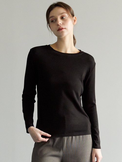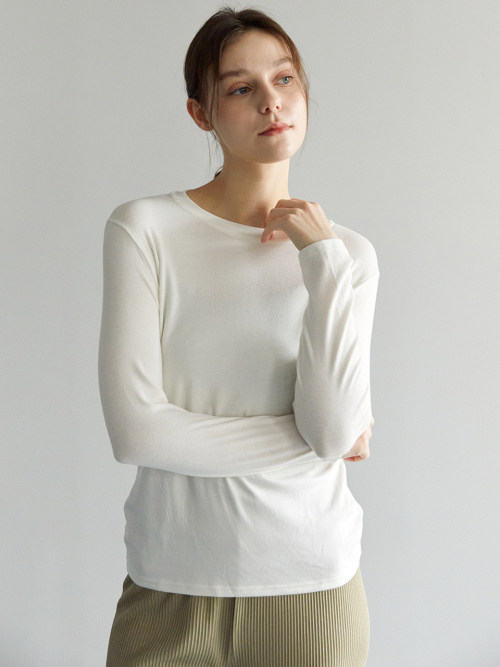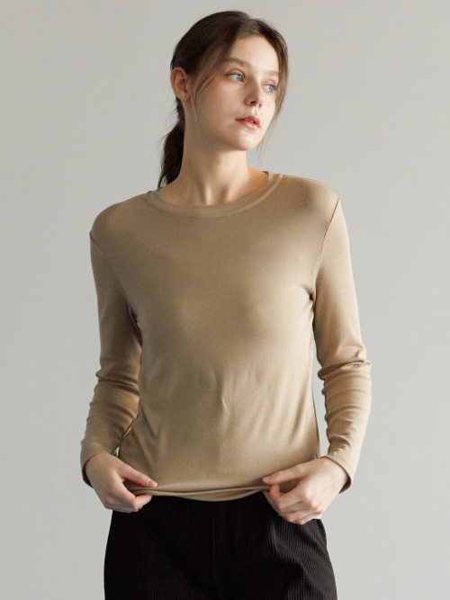 벨벳터치 골지 목폴라 티셔츠 - 그린