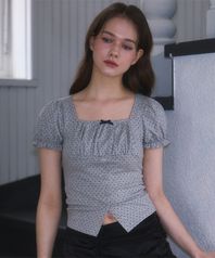 LACE SQUARE HEART NECK SHORT SLEEVE GREY