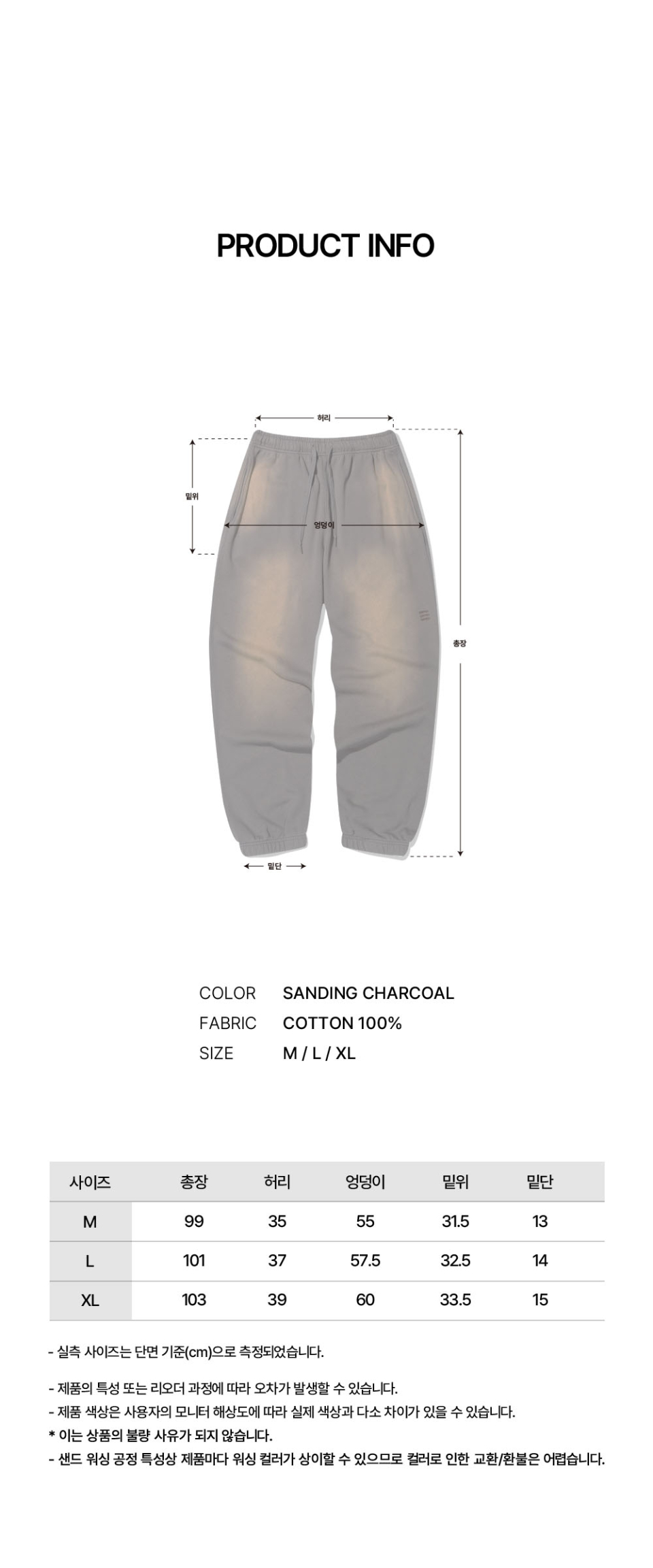 모리타니 샌딩 조거 팬츠 [샌딩차콜]