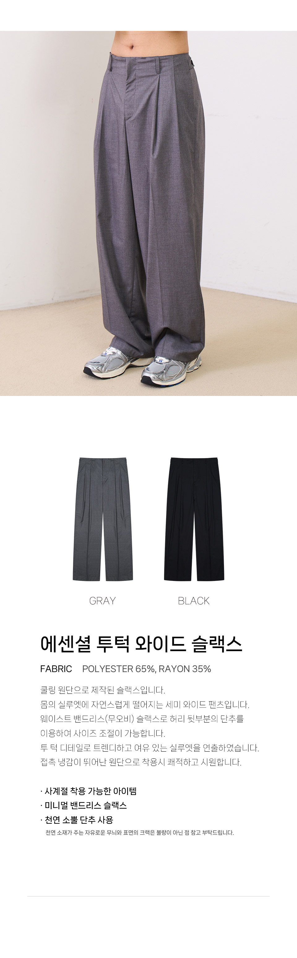 에센셜 투턱 와이드 슬랙스 (GRAY)
