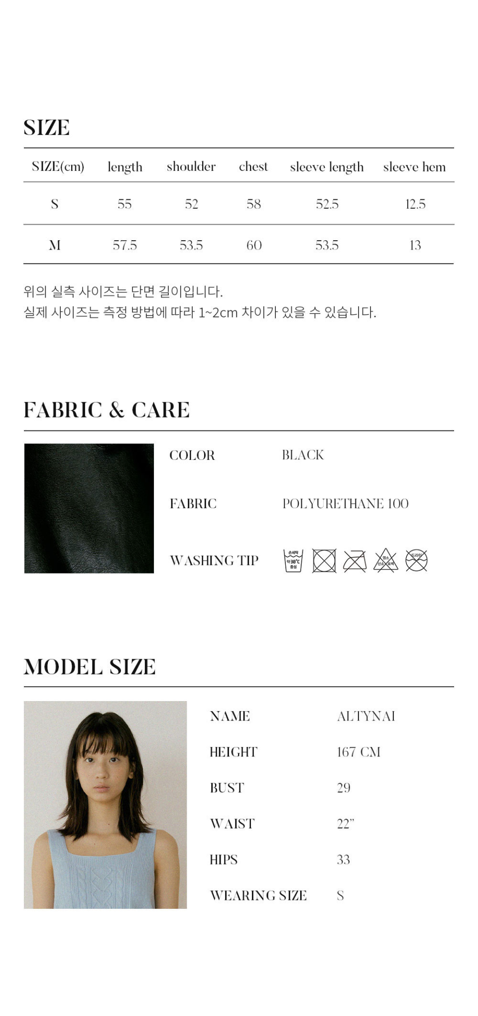 여유로운 핏과 적당한 기장감으로 활동성이 높은 레더 블루종 자켓입니다. 탄탄한 밴드로 마감한 헴 라인과 뒷면의 플랩 디테일로 볼륨감 있는 실루엣을 연출해 주며, 같은 색감의 스냅 버튼과 YKK 지퍼의 이중 여밈 구조로 견고하게 제작하였습니다. 소프트한 텍스처와 편안한 착용감으로 다양한 자리에서 활용이 가능합니다.