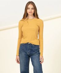 우먼즈 슬림 크루 넥 긴소매 티셔츠 [다크 그레이]