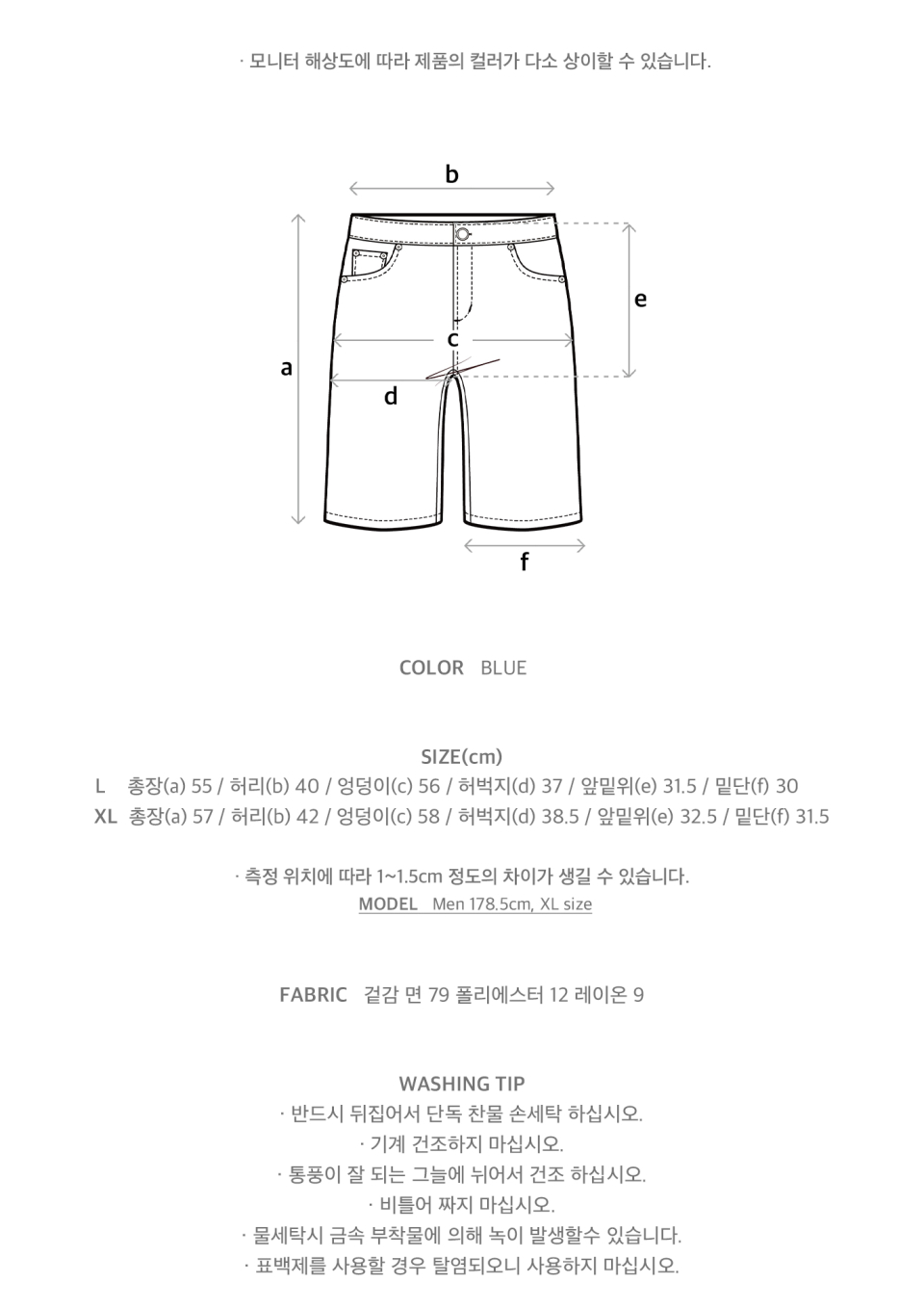 맨즈 데일리 하프 데님 팬츠 블루