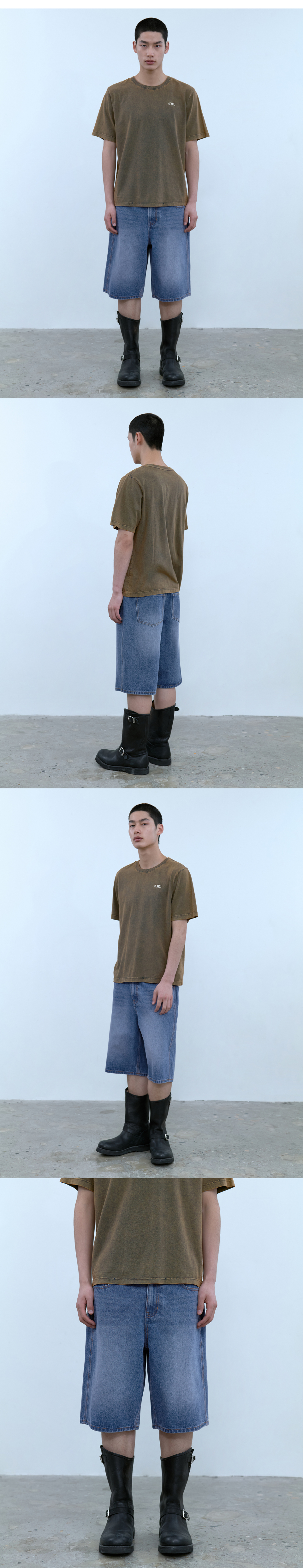 맨즈 데일리 카고 하프 데님 팬츠 아이스 블루