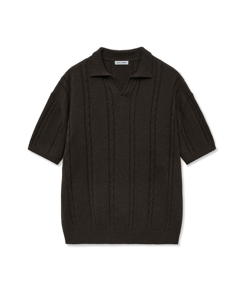 코튼 캐시미어 케이블 카라 니트 [브라운]