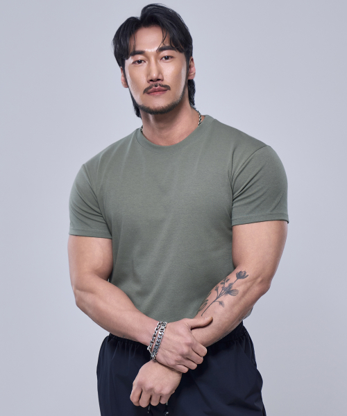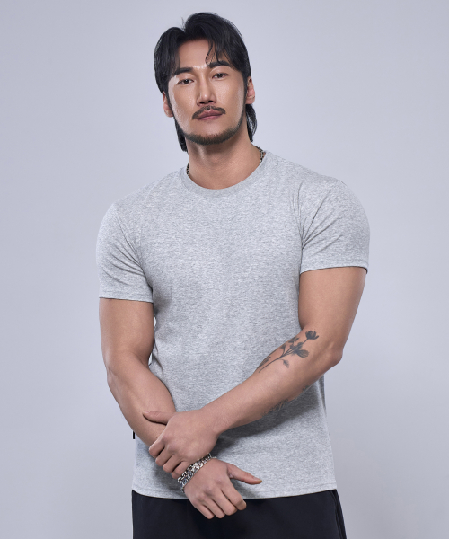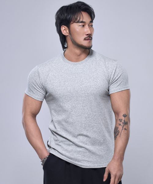 프리미엄 코튼 머슬핏 반팔 티셔츠 [차콜]