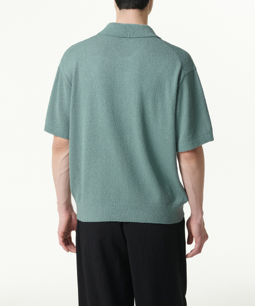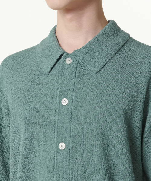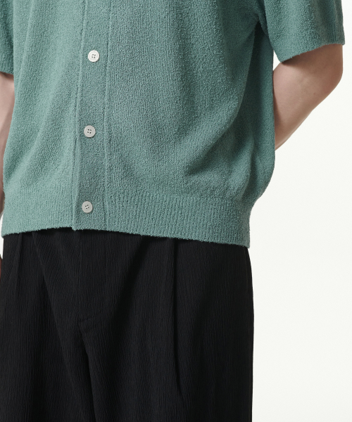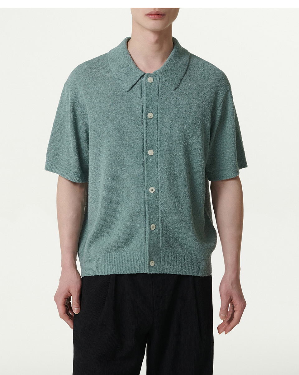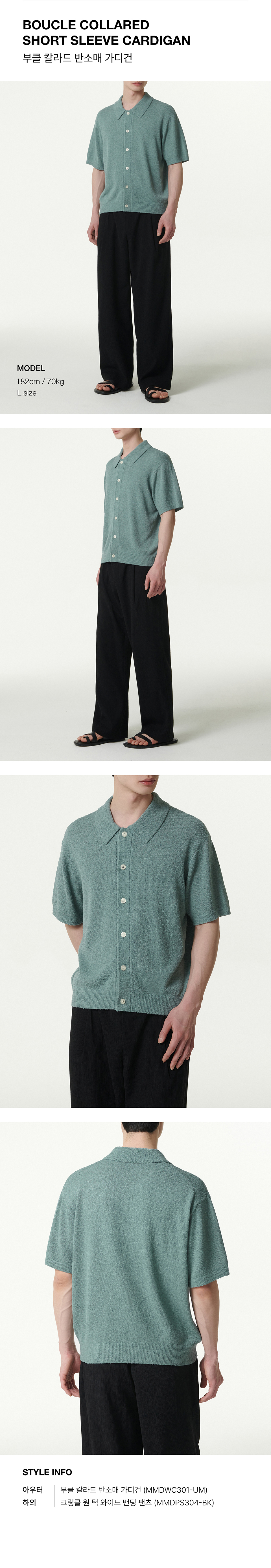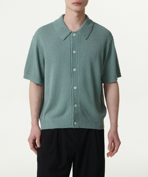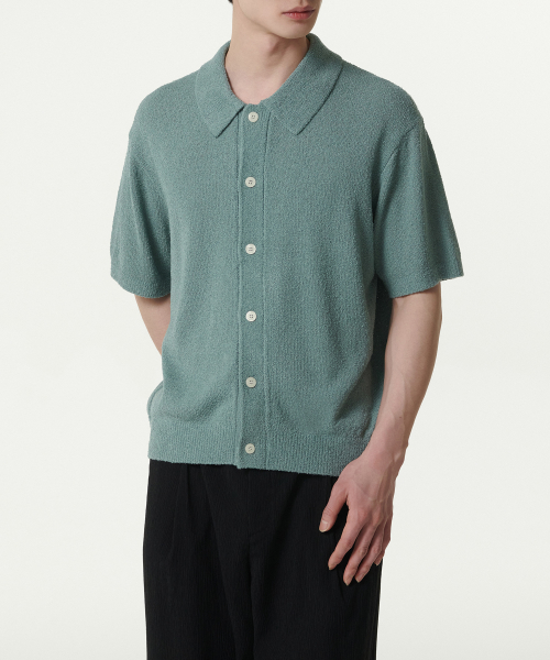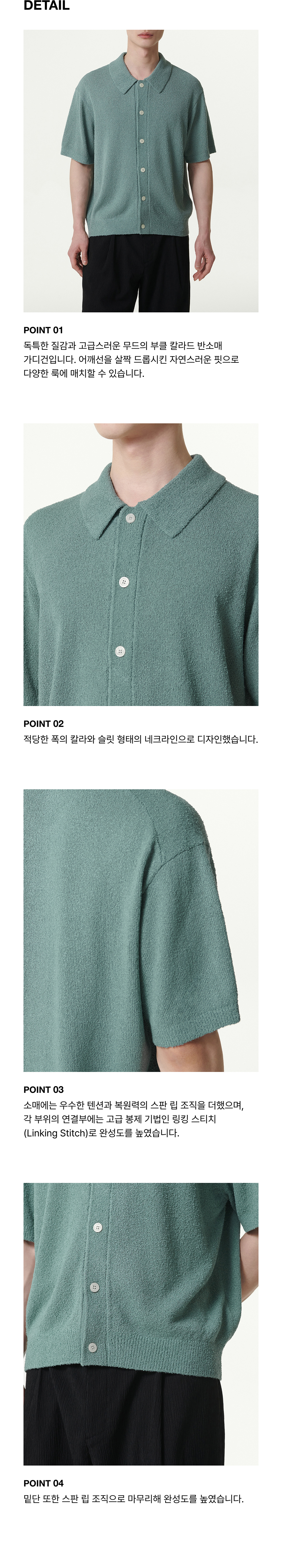 부클 칼라드 반소매 가디건 [더스티 민트]