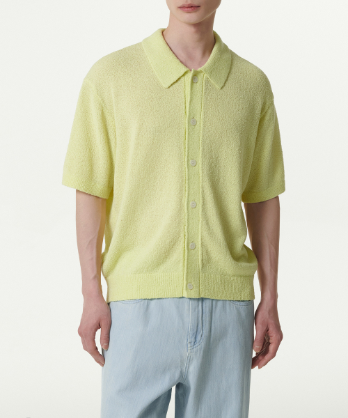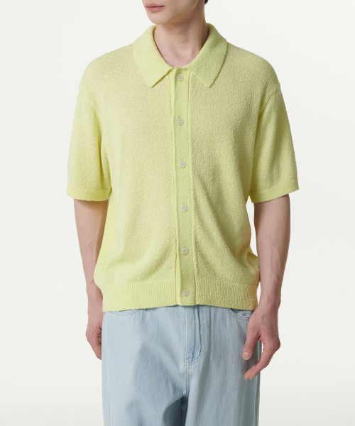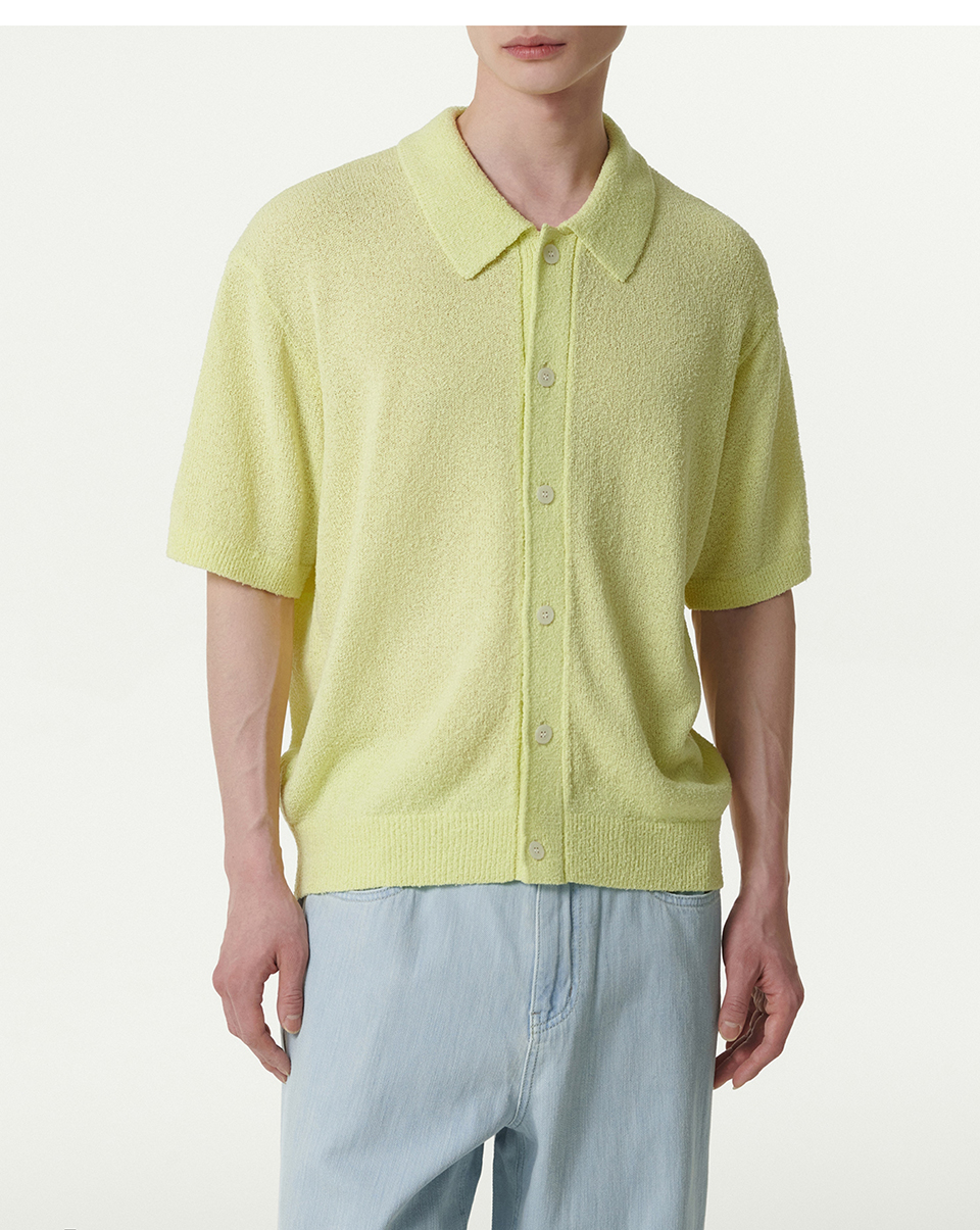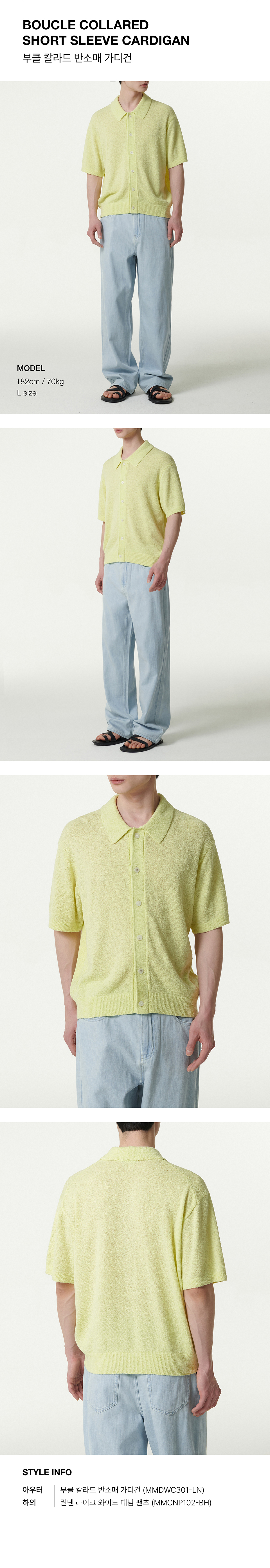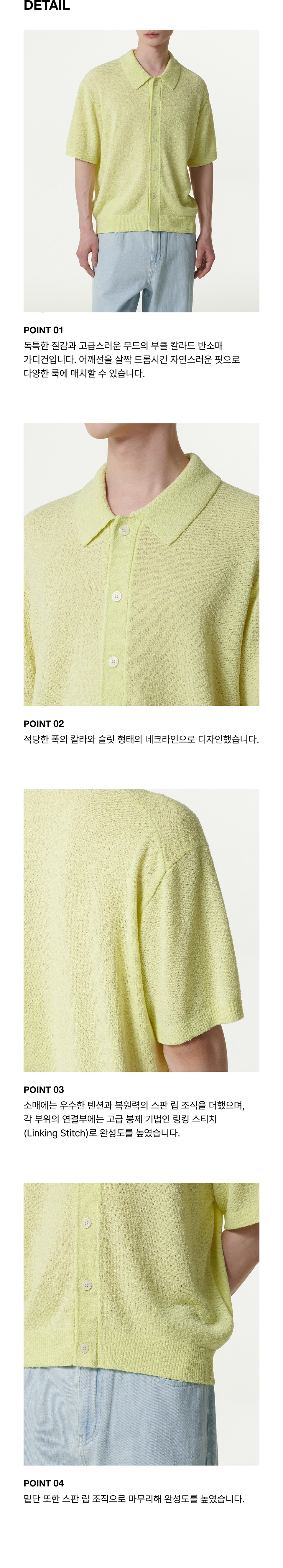 부클 칼라드 반소매 가디건 [더스티 민트]