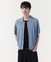 부클 칼라드 반소매 가디건 [블루 그레이]