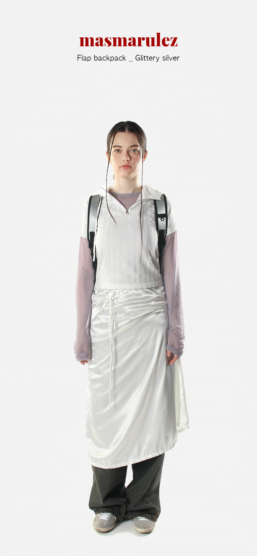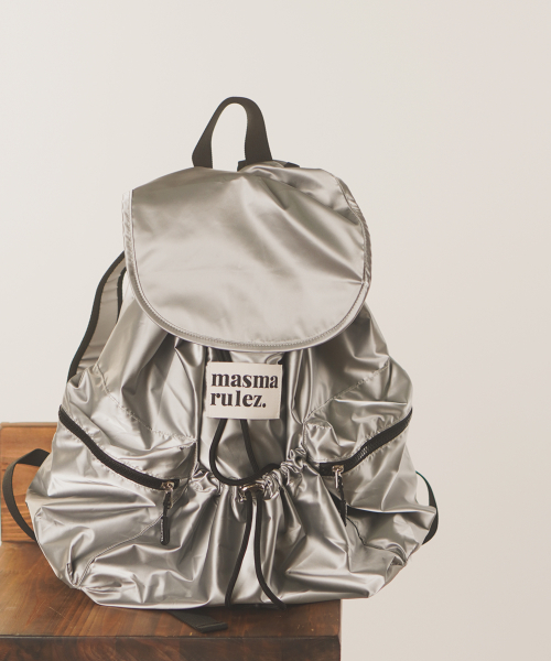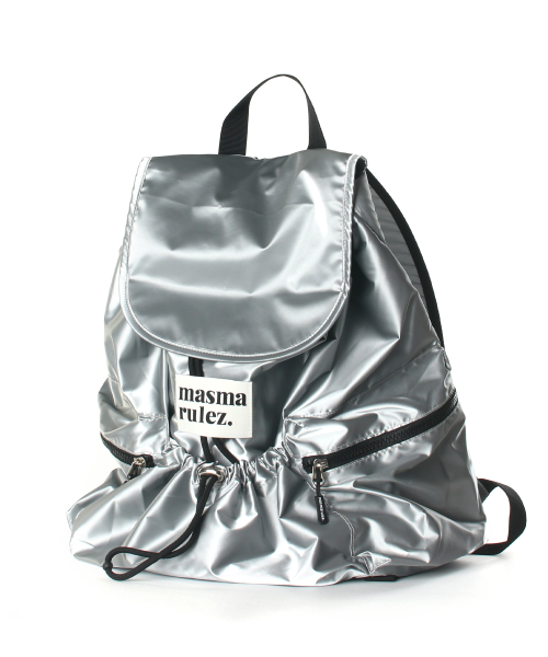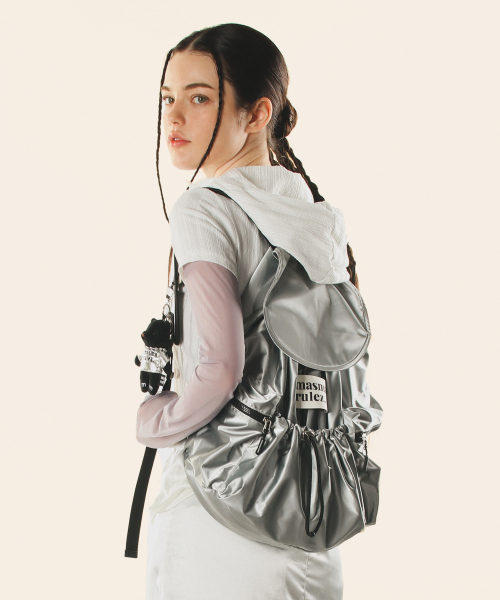String flap backpack _ Glittery silver