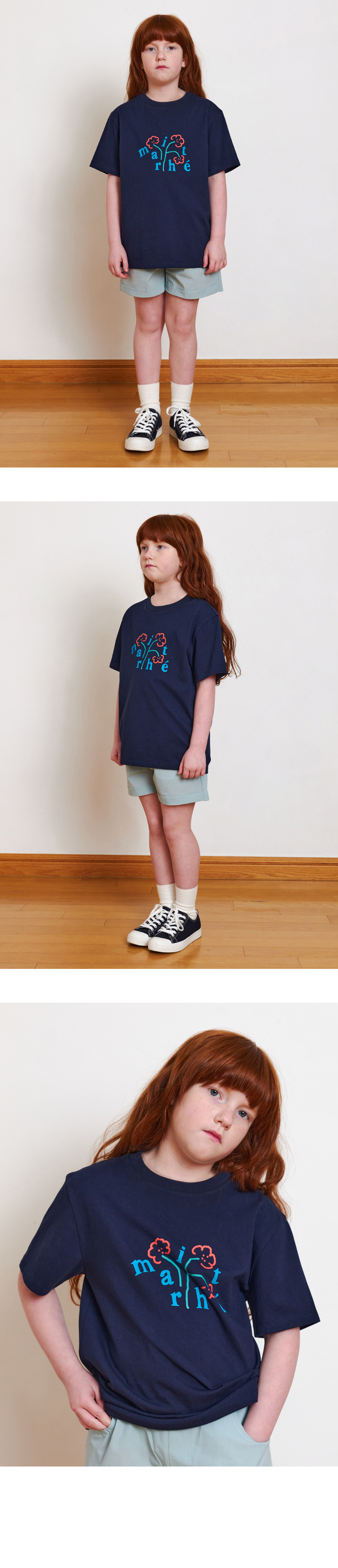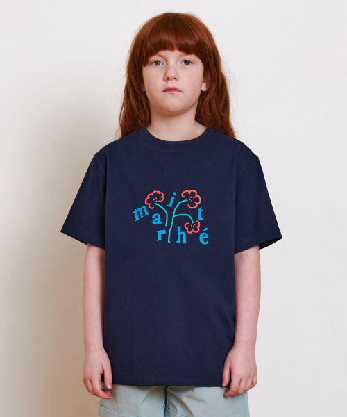 ENFANT COLOR BLOCK FLOWER TEE navy