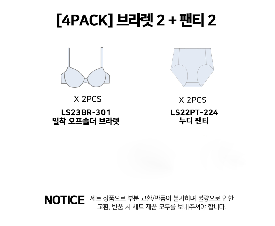 [2 SET] 301-밀착오프숄더 브라렛 2 / 224-팬티 2