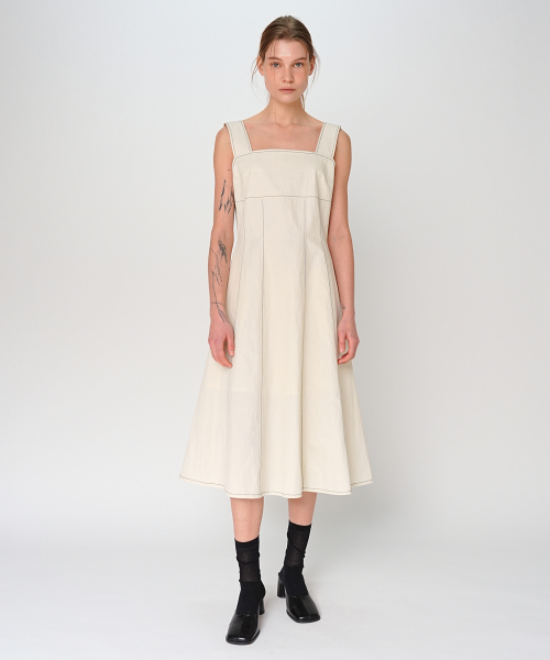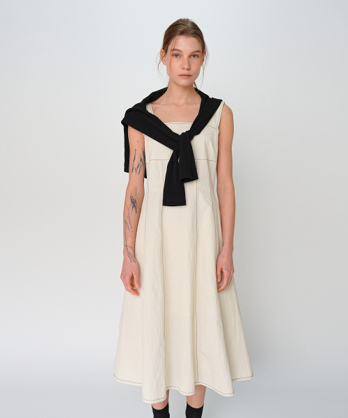 SLEEVELESS STITCH LONG DRESS / IVORY