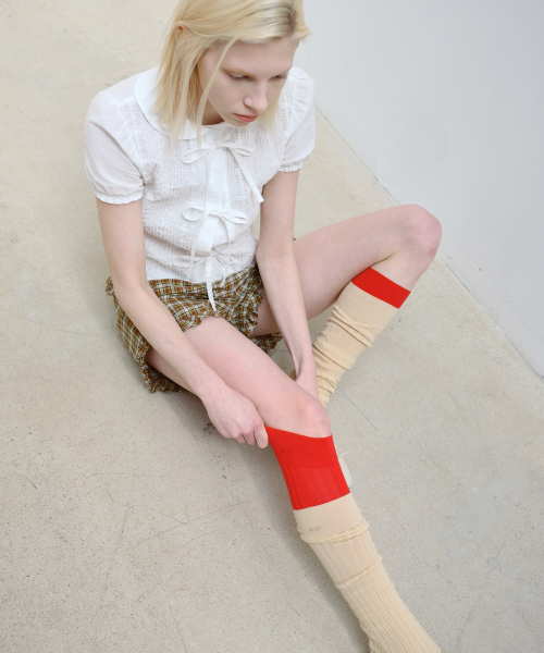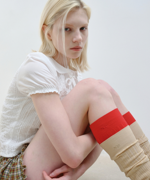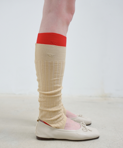 EMBROIDERY STIRRUP LEG WARMER - BEIGE