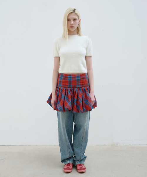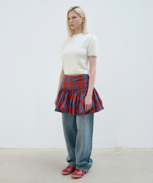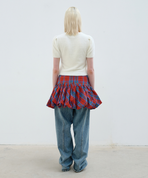 BALLOON DETAIL SATIN SKIRT - BLACK