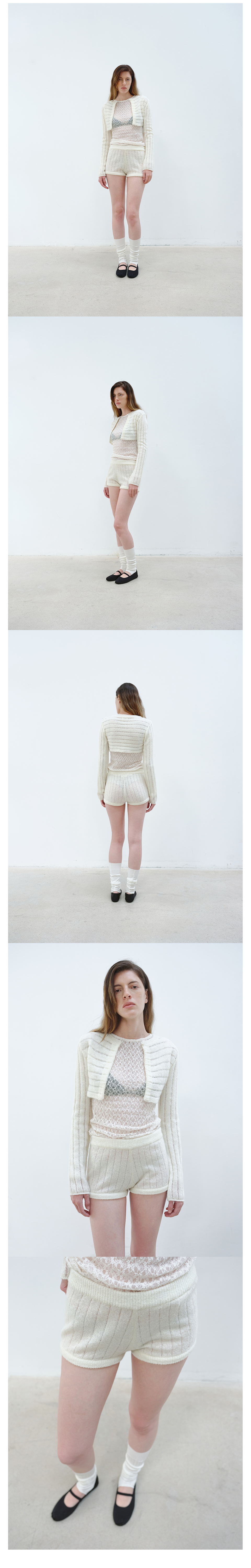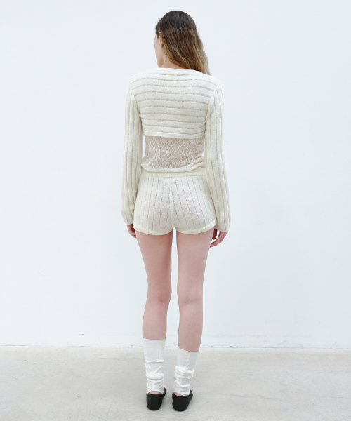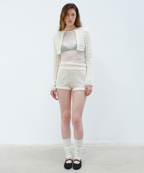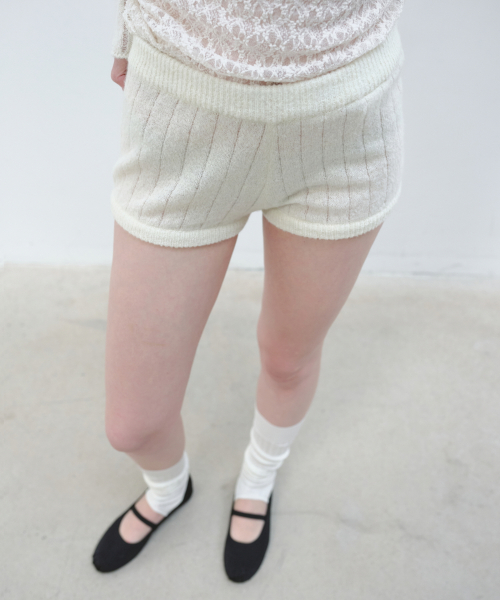 RIBBED KNIT SHORTS - IVORY