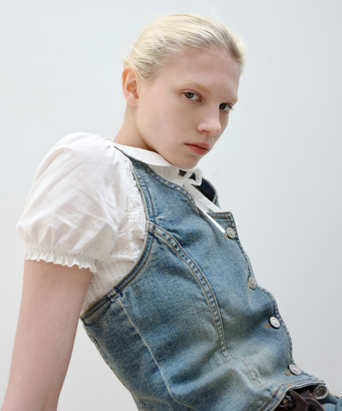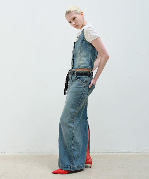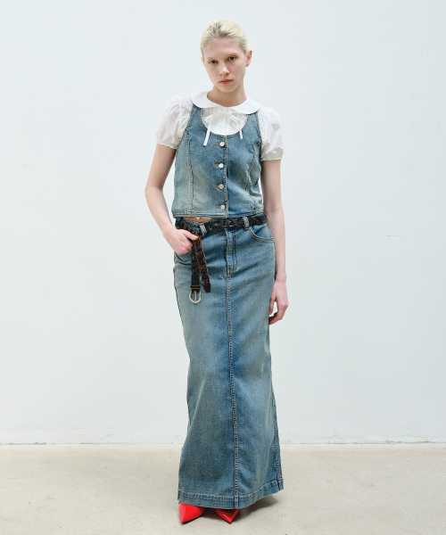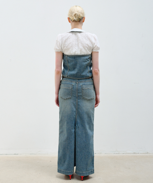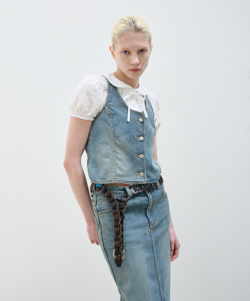 HALTER NECK DENIM VEST - BLUE