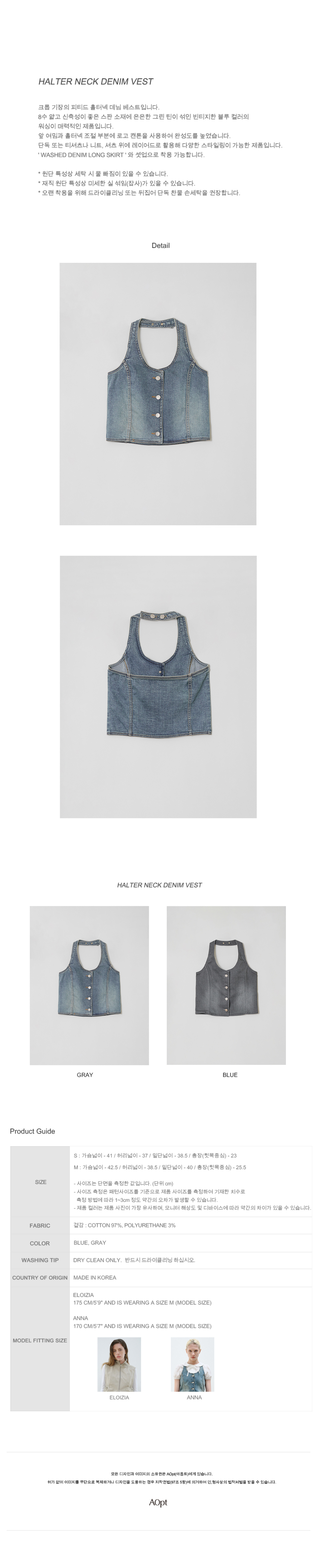 아옵트(AOPT)는 'AFTER'와 'OPT'의 합성어로, 모두가 아옵트를 선택한 후에 달라진 일상을 경험하길 바라는 의미를 담은 브랜드입니다. 일상에서 경험하는 감정과 상황에 영감을 받아 자유로운 디테일과 소재, 다양한 색감을 가미한 디자인을 선보입니다. 다양하게 살아가는 사람들의 일상에 녹아들어 오래도록 함께할 수 있는 패션을 제안합니다.