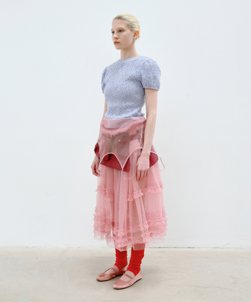 TWO-WAY ROSE SHIRRING TOP - SKY BLUE