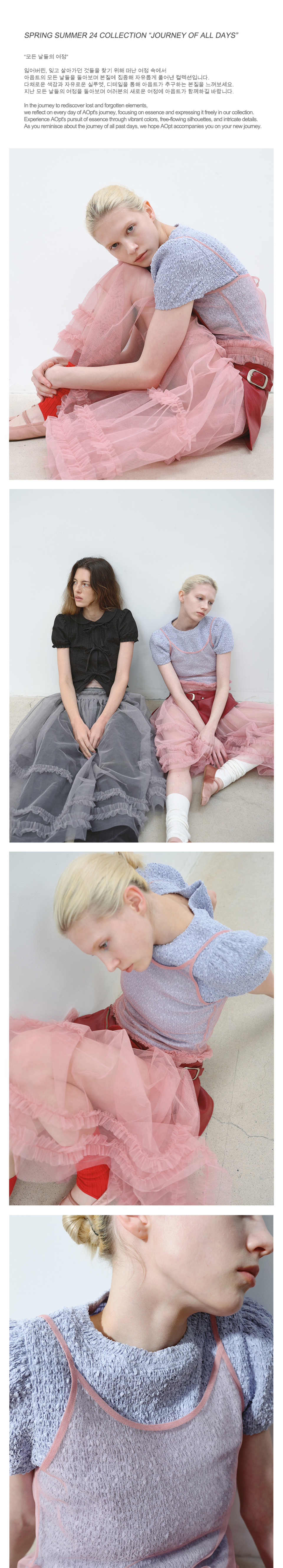 아옵트(AOPT)는 'AFTER'와 'OPT'의 합성어로, 모두가 아옵트를 선택한 후에 달라진 일상을 경험하길 바라는 의미를 담은 브랜드입니다. 일상에서 경험하는 감정과 상황에 영감을 받아 자유로운 디테일과 소재, 다양한 색감을 가미한 디자인을 선보입니다. 다양하게 살아가는 사람들의 일상에 녹아들어 오래도록 함께할 수 있는 패션을 제안합니다.