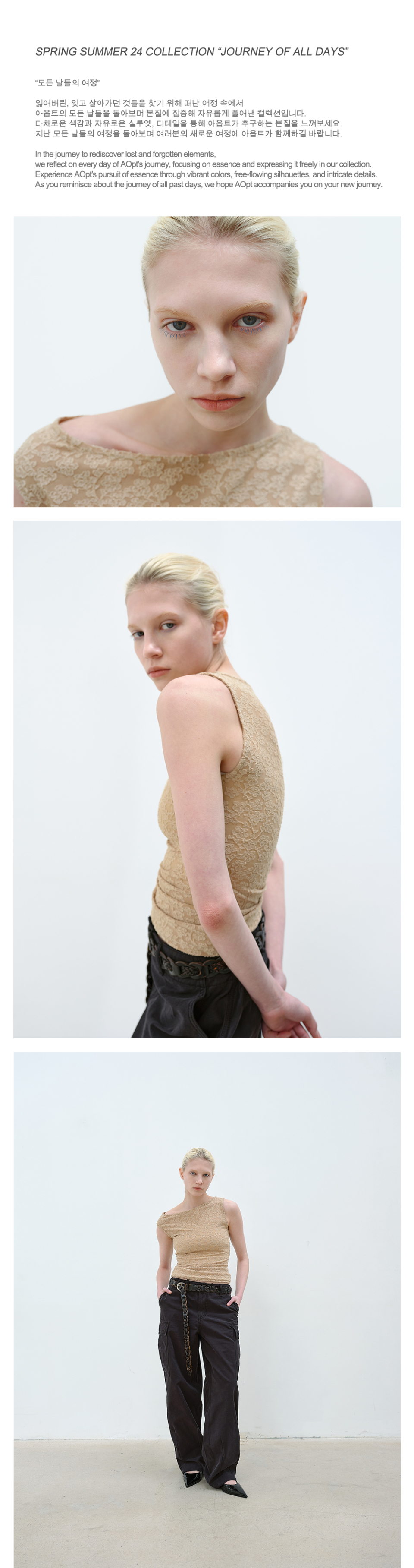 아옵트(AOPT)는 'AFTER'와 'OPT'의 합성어로, 모두가 아옵트를 선택한 후에 달라진 일상을 경험하길 바라는 의미를 담은 브랜드입니다. 일상에서 경험하는 감정과 상황에 영감을 받아 자유로운 디테일과 소재, 다양한 색감을 가미한 디자인을 선보입니다. 다양하게 살아가는 사람들의 일상에 녹아들어 오래도록 함께할 수 있는 패션을 제안합니다.