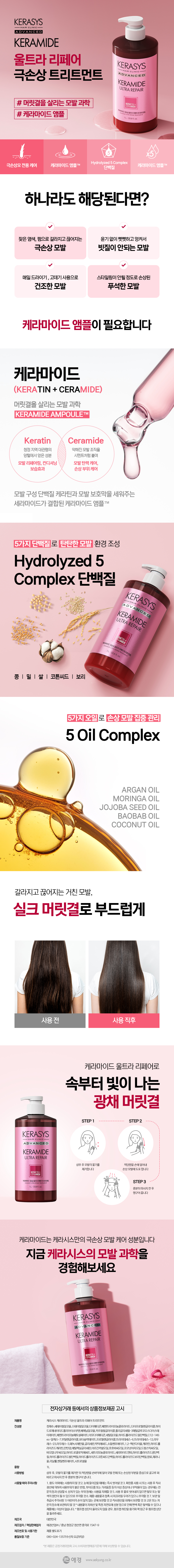 [손상모 전용] 케라마이드 극손상 울트라 리페어 트리트먼트 1L + 샴푸 180ml 추가증정구성
