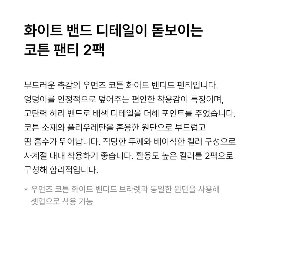 우먼즈 코튼 화이트 밴디드 팬티 2팩