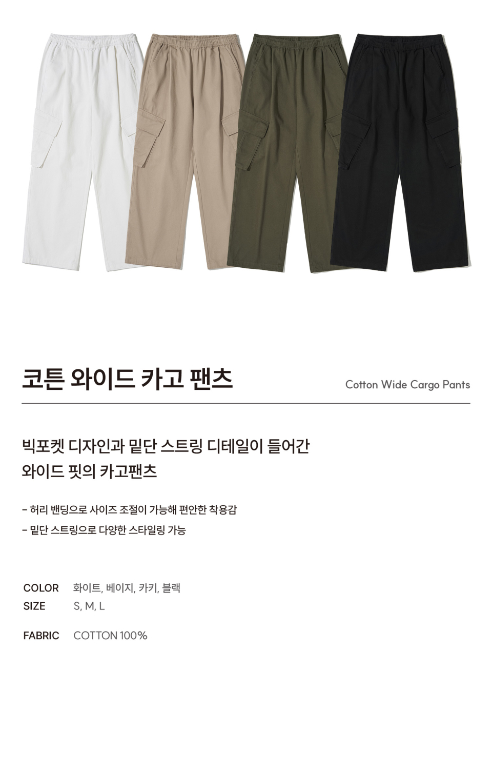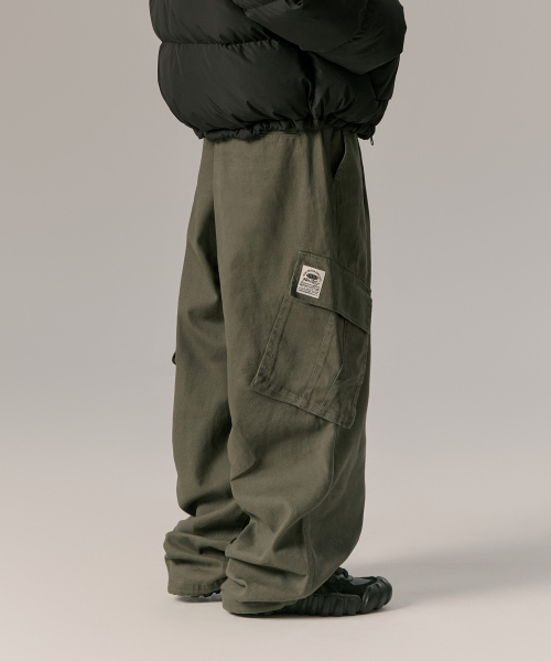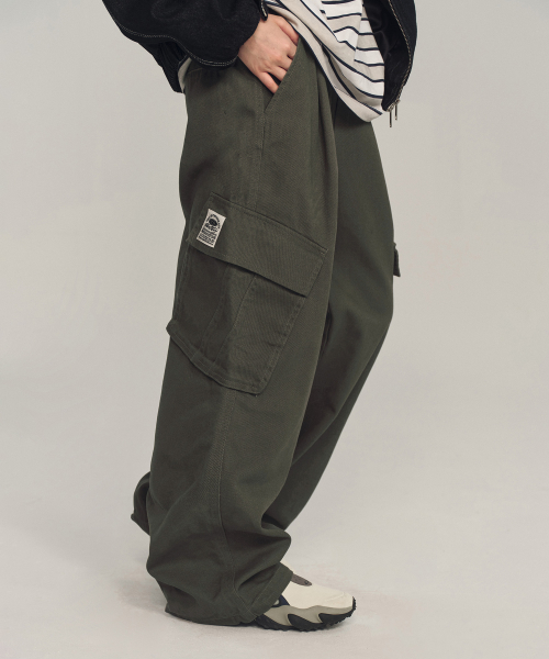 코튼 와이드 카고 팬츠_카키