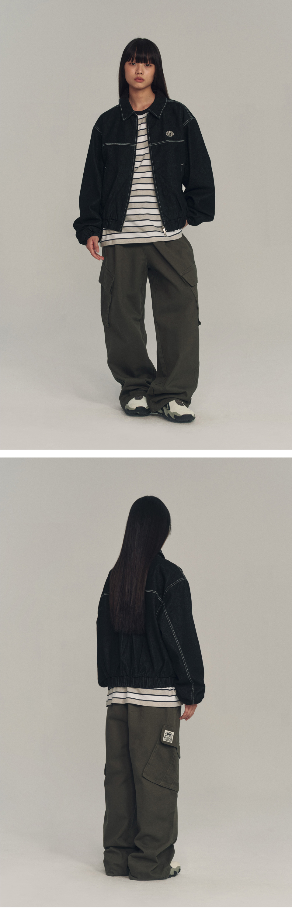코튼 와이드 카고 팬츠_블랙_PL179