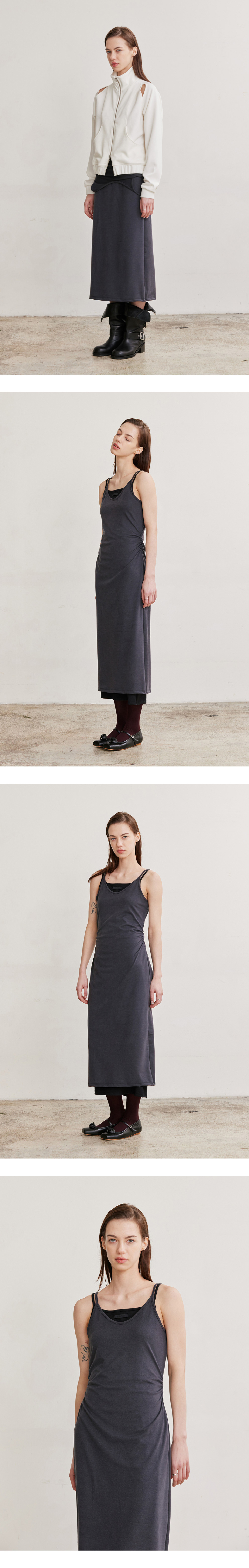 - 레이어 된 두 가지 원피스를 각각 단독으로도 착용이 가능하며, 파임 정도가 깊지 않아 다른 이너와도 매치하실 수 있어 활용도가 높습니다.