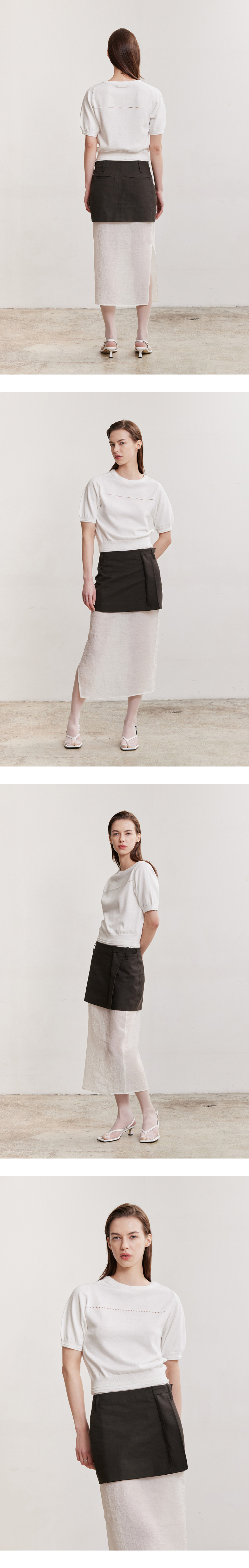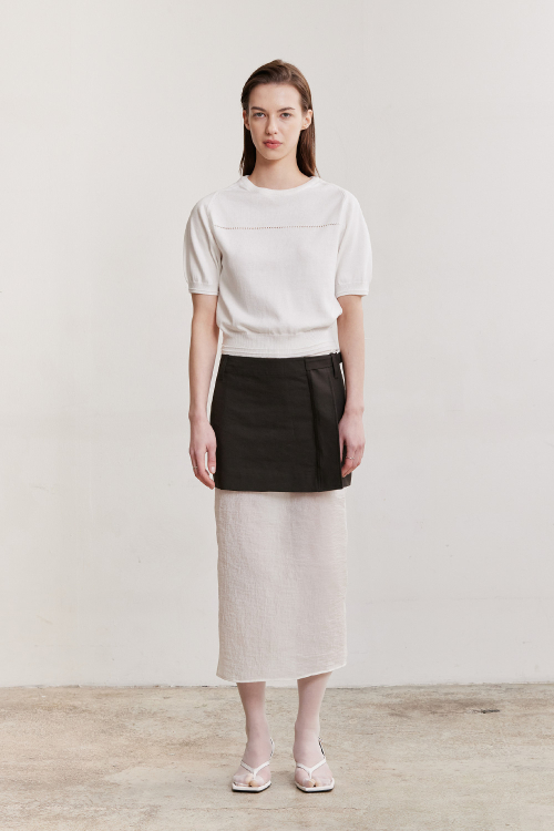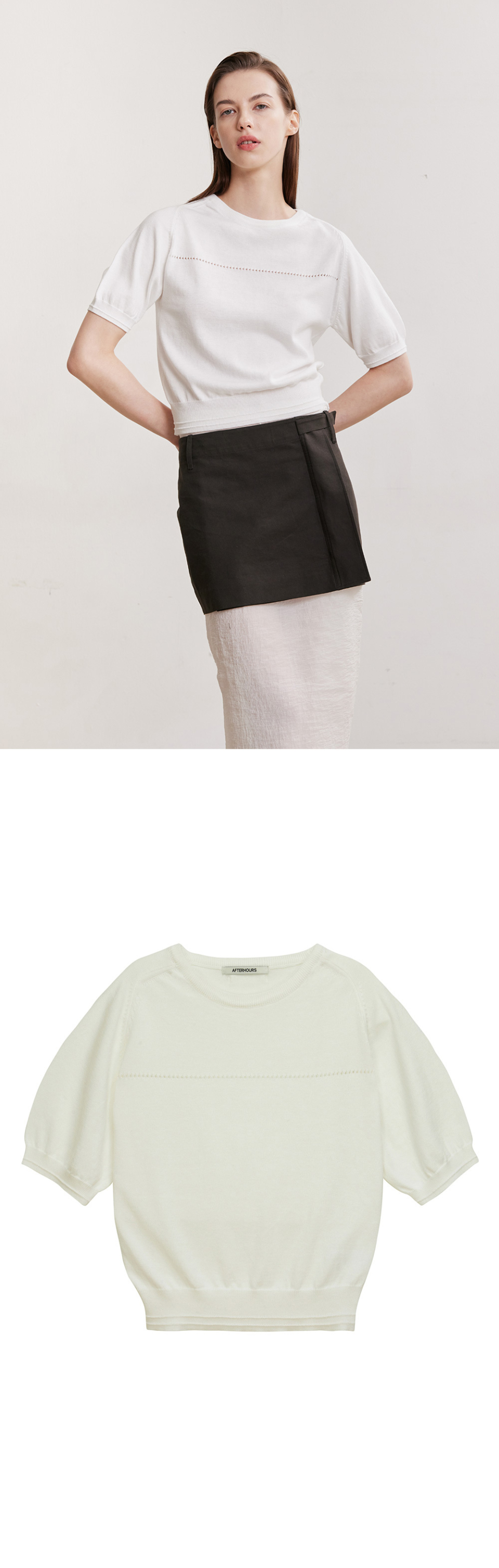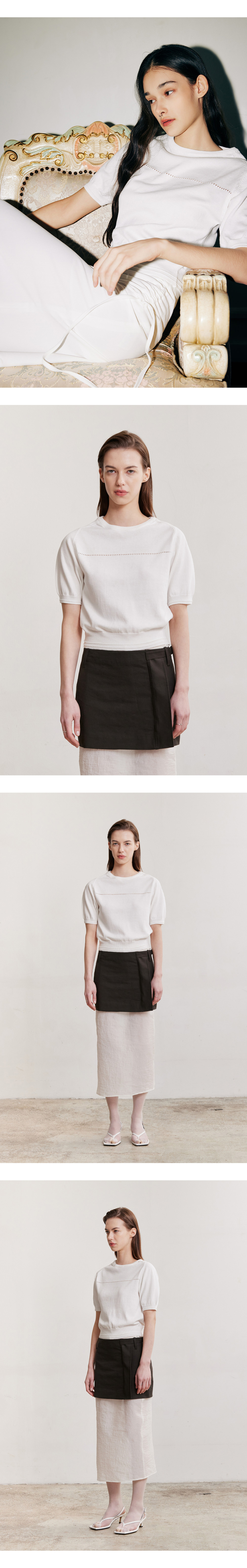 - 소매와 밑단 이중 라인과 몸판의 촘촘한 컷아웃 디테일로 세련된 무드를 완성시킬 포인트를 주었습니다.